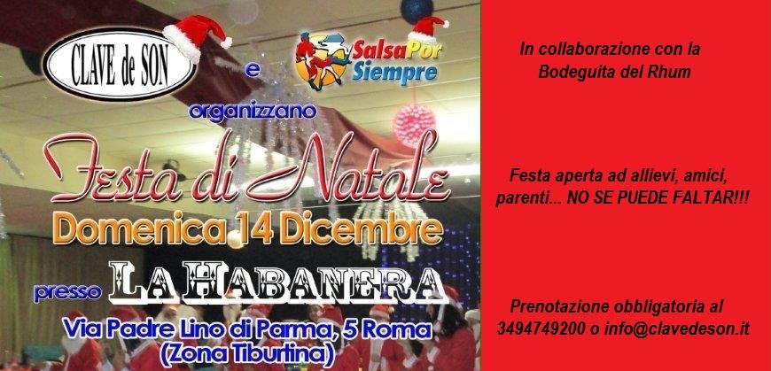 CLAVE DE SON e SALSA POR SIEMPRE in collaborazione con BODEGUITA DEL RUM organizzano FESTA DI NATALE l’appuntamento e’ domenica 14 dicembre dalle ore 20,00 presso LA HABANERA via Padre Lino da Parma, 5- ROMA (zona Rebibbia/Tiburtina) CENA con MENU’ FISSO a buffet a seguire musica cubana e serata perballare costo a persona 20 euro La festa è aperta a […]