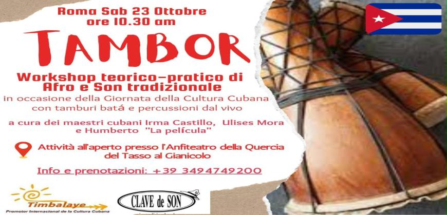 WORKSHOP TEORICO E PRATICO DI AFRO E SALSA SABATO 13 NOVEMBRE CLAVE DE SON e TIMBALAYE Presentano ONI ONI Sabato 13 Novembre presso Anfiteatro della Quercia del Tasso, Gianicolo Un WORKSHOP teorico-pratico di Afro e Salsa Con tamburi bata’ e percussioni dal vivo a cura dei maestri Irma Castillo, Ulises Mora e Humberto “La Pelicula”. Un appuntamento […]